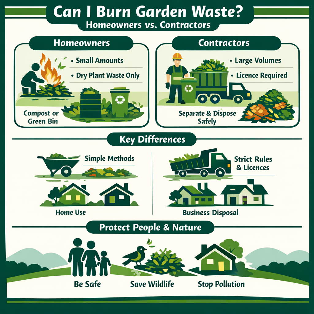 Garden waste rules are different for homeowners and contractors. Here’s a clear comparison: