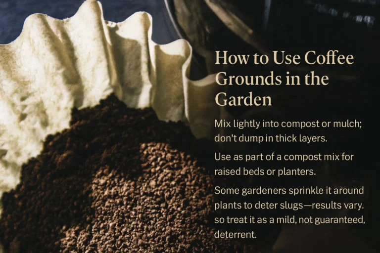 Gardens like gentle care, not big piles. First, spread coffee grounds in thin layers so they mix in and break down slowly. Then, mix them with compost or dry leaves to share nutrients and keep the soil damp. In garden beds or pots, use just a little. Coffee grounds should help the mix, not take over. For slugs, every garden is different. Try a small sprinkle and see what happens. For better results, use coffee grounds with other barriers like crushed eggshells. Finally, mix with old leaves for a soft cover on the soil. Water gently so it settles without clumping.