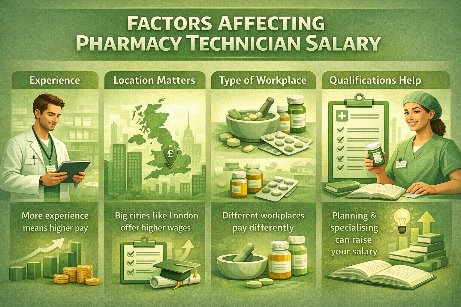 Here’s the simple truth. How much does a pharmacy technician earn is mostly influenced by experience. At the start, trainees earn the lowest pay. For this reason, they often earn close to the National Minimum or Living Wage. Even so, this stage is short. Once training ends and registration is done, pay starts to go up.