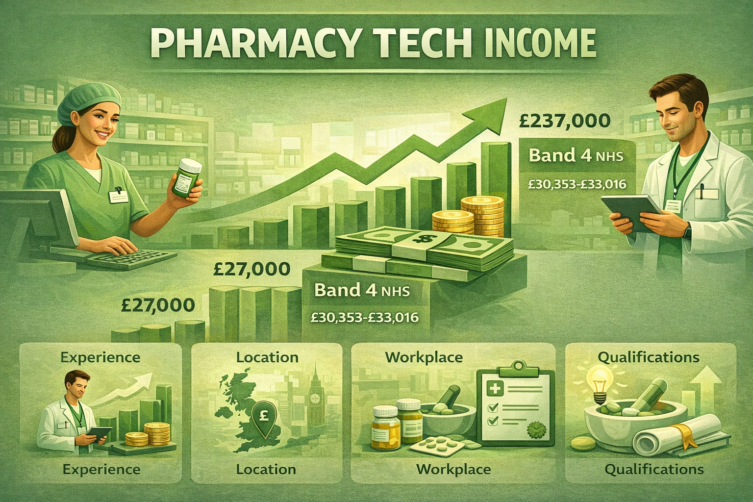 When it comes to pay, beginners usually earn around £27,000, while experienced technicians can earn up to £38,000 or more. In the NHS, Band 4 salaries start at £30,353 and rise to £33,016. Over time, pharmaceutical tech pay can grow to Band 5 which ranges from £33,247 to £41,424. In London and other big cities, salaries are often higher. At the same time, learning new skills or taking extra training can help you earn more and advance your career.