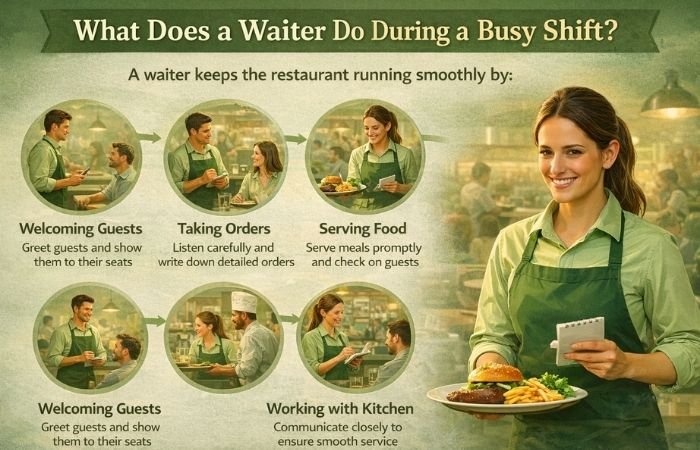 Let’s look step by step at how a waiter helps guests, serves food, and keeps the restaurant running smoothly.